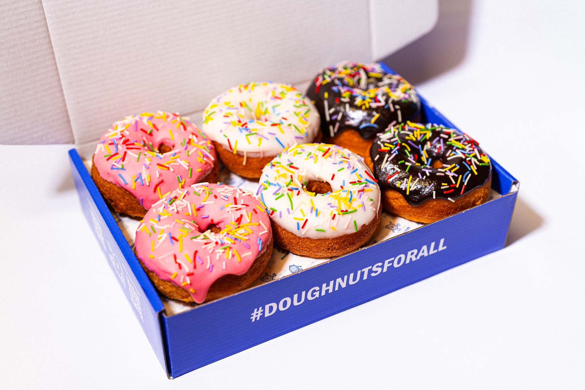 Celebrate every occasion with our vibrant party sprinkle doughnuts! These fun, fluffy doughnuts generously adorned with colourful sprinkles. Perfectly light and bursting with joy they are the perfect way to treat yourself and share the joy with friends and family!