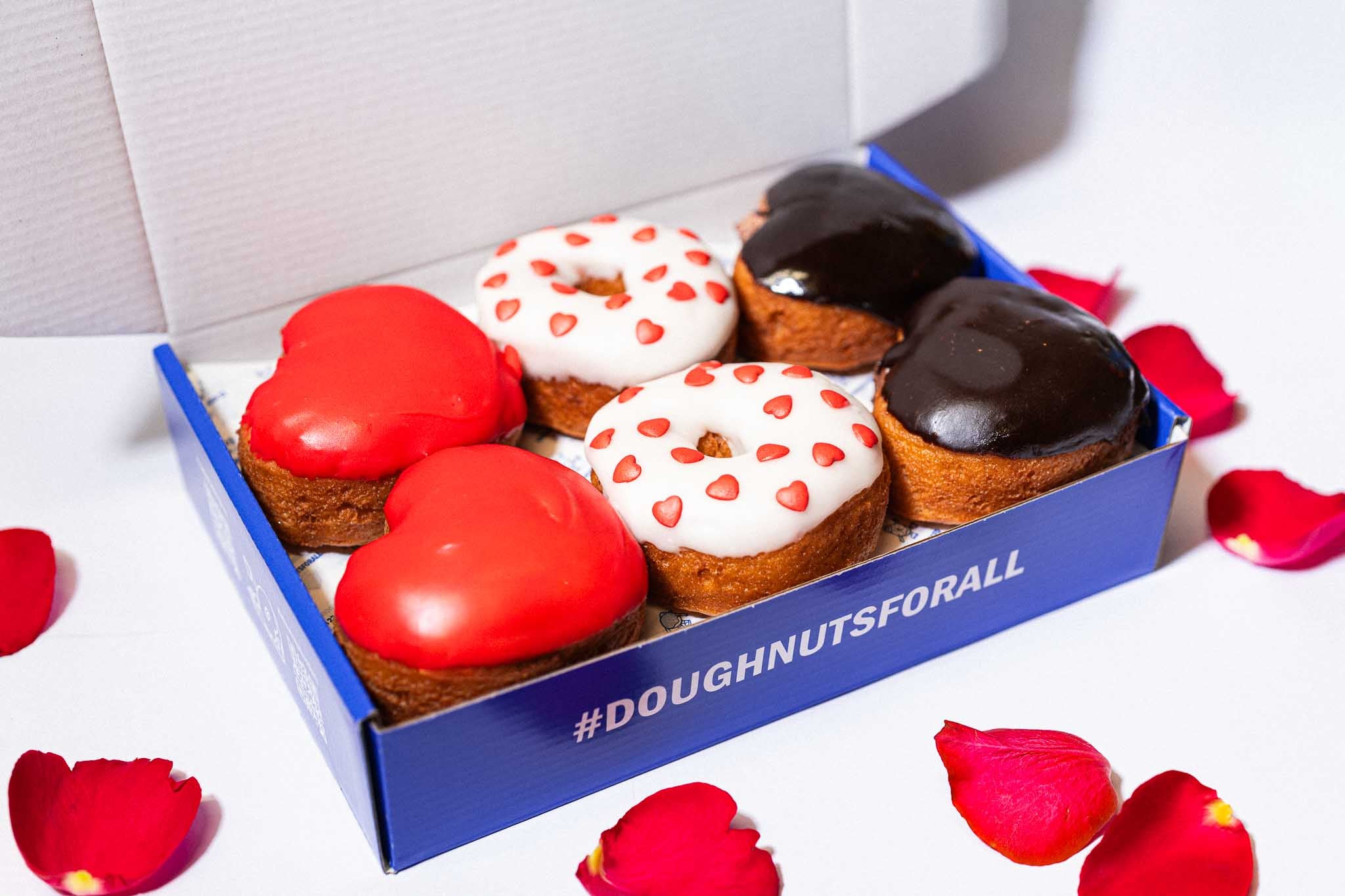 Love Yours with Borough 22’s limited edition box of 6 doughnuts, made for sharing, gifting, or keeping all to yourself. Includes: Chocolate heart doughnuts filled with chocolate cream Red heart doughnuts filled with jam White ring doughnuts with red heart sprinkles Perfect for sweet moments, date nights, friends and little acts of love.