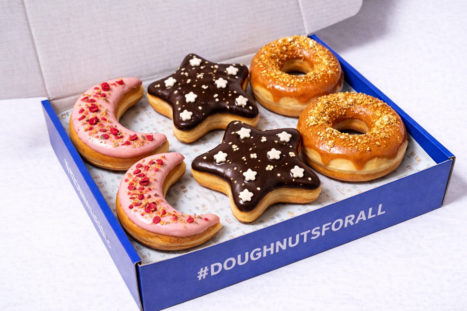 Our fried doughnuts are made using a proprietary blend of naturally gluten-free ingredients, developed and refined over years. The full recipe is protected by trade secrets, but for transparency and allergen guidance, we can share that they contain: A combination of gluten-free flours including corn, rice, and gluten-free oats (avenin) along with a natural binder and yeast. Glucose Syrup, Palm Oil, Sugar, Invert Sugar Syrup, Water, Pea Protein, Salt, Emulsifier: Mono- and DiGlycerides of Fatty Acids, Natural Flavouring, Caramelised Sugar Syrup. Gold dust